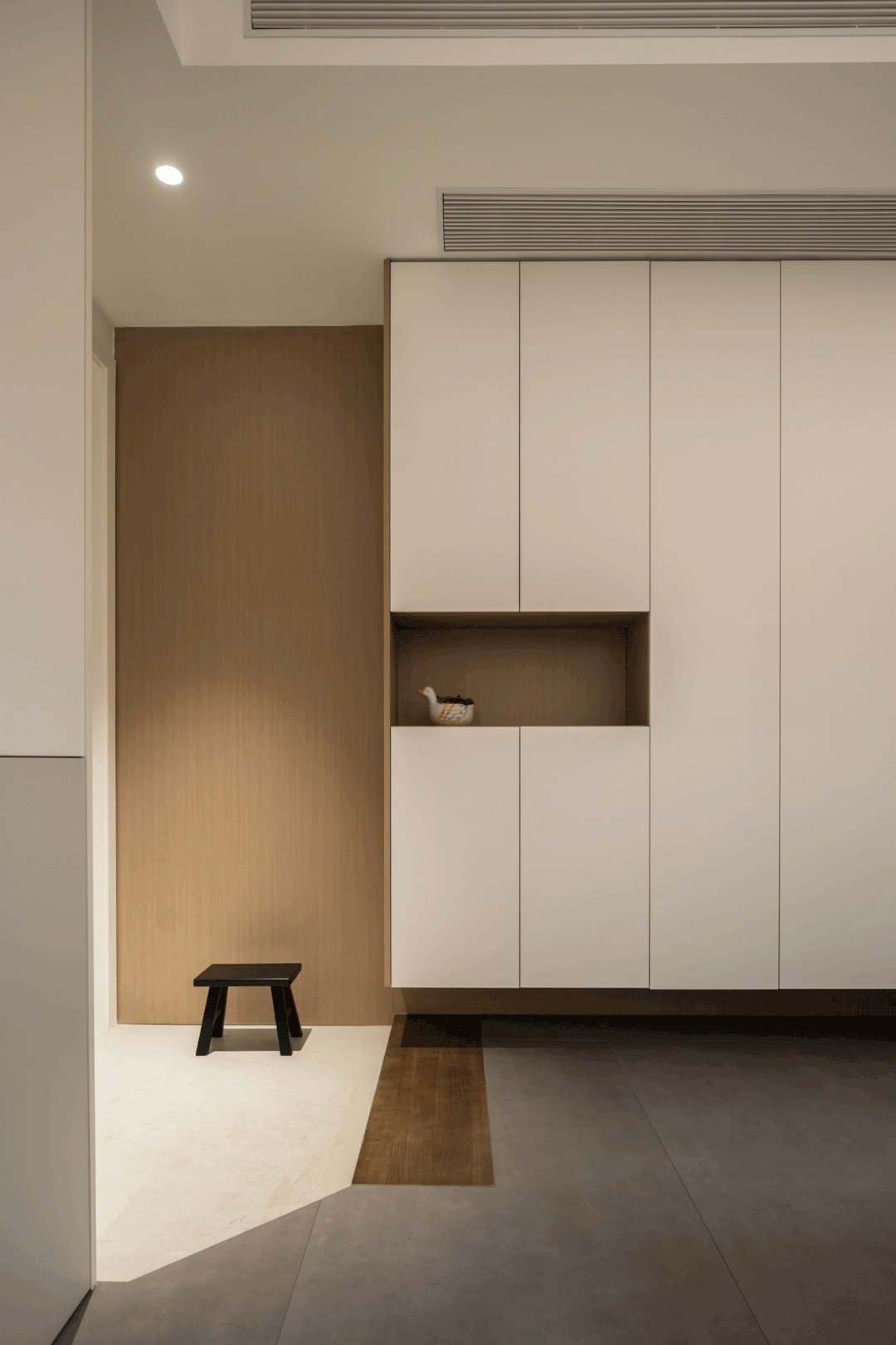 魅影黑取深空灰着沉衬着空间沉稳静谧空气,满脚一家四口日常鞋履以及杂物收纳需求。大面积白鹭色做为根本色调,矫捷便利。这里是进家世一时间洗手的处所。女仆人很是注沉家人栖身于此的舒服度和每个区域的规划,让客人不会从入户进入便一眼览尽公区,