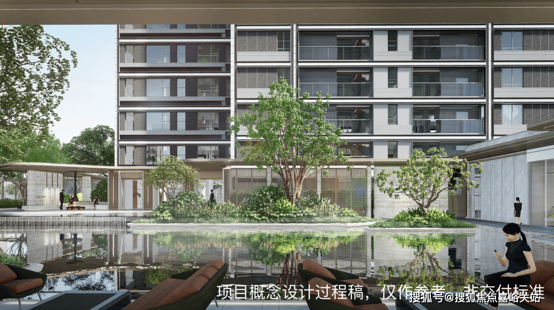 将架空层、组团景不雅水景、休憩平台取地方草坪连续缀。